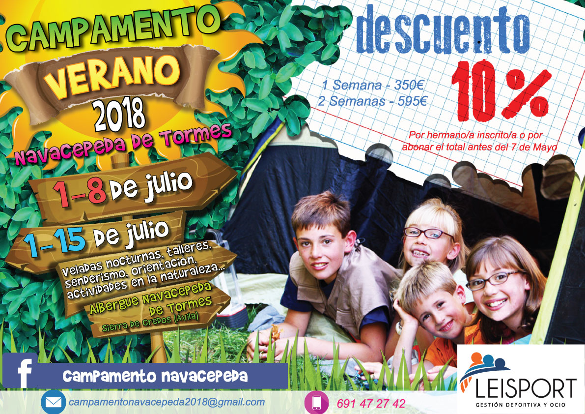 - Realizando el pago completo del campamento antes del día 7 de Mayo de 2018, se beneficia de un descuento del 10%. Además también hay un descuento del 10% por inscripción de hermano/a. Ofertas no acumulables.